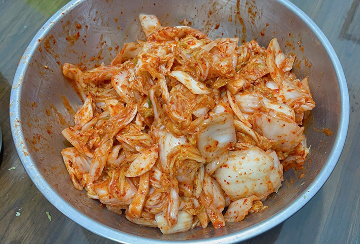 作法:先將粉絲煮熟撈起拌香油少許及鹽少許,波菜洗凈川燙撈起擠乾水備用,然後香菇切絲,素火腿切絲,紅蘿蔔切絲,先炒香備用。將香油、素毫油放入大容器中然後將備好的材料全放入一起攪拌後盛起即可食用。