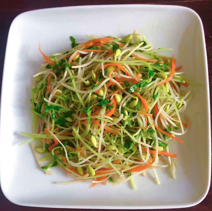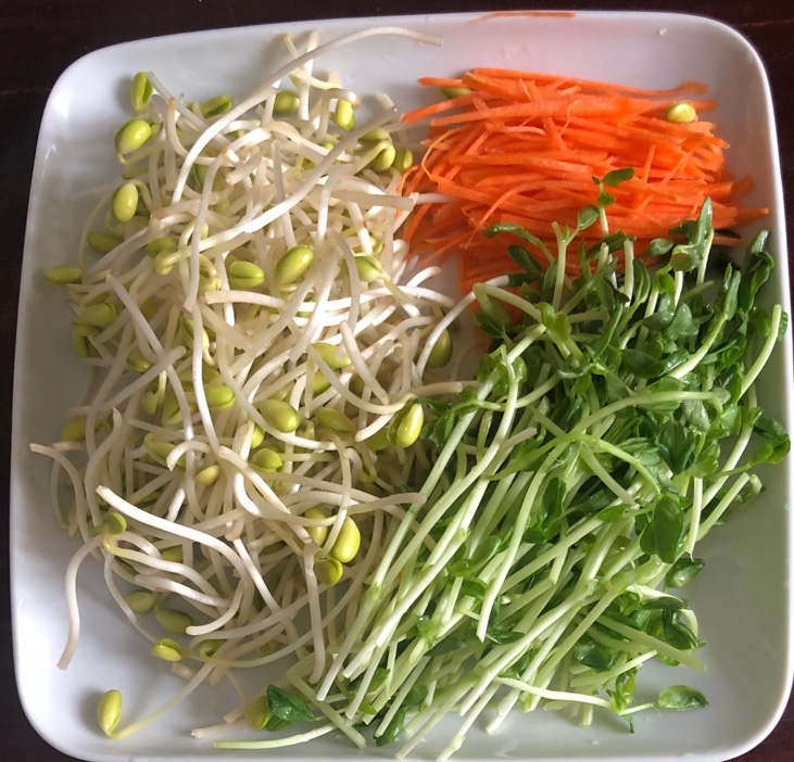 材料:黃豆芽、豆苗芽、紅蘿蔔。