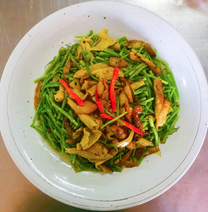煙燻麵腸炒蔖筍 Posted on 2021-10-15 by malichuang 回應 材料:蘆筍、煙燻麵腸、紅蘿蔔。作法:煙燻麵腸切片,蘆筍切小段,紅蘿蔔切絲,蘆筍先川燙備用。鍋內放油下麵腸煸香盛起,再放籚筍快炒+鹽拌炒盛起,麵腸舖在籚筍上面完成。 備註:煙燻麵腸是德宣包子鋪產品