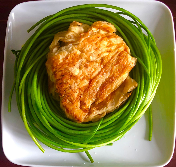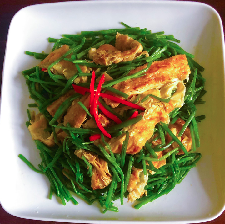 水蓮炒豆包 Posted on 2021-11-02 by malichuang 回應 材料:水蓮、豆包、薑、沙茶。作法:先把水蓮洗淨切斷川燙 (水裡放點鹽) 備用。把已煎好的豆包切片段,薑切絲,鍋內放油下薑絲炒香+豆包+沙茶+鹽炒入味+川燙 (20秒) 的水蓮拌炒+少許水翻炒起鍋裝盤。