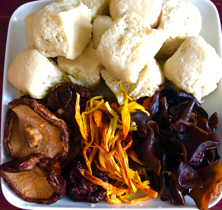 材料:烤麩、金針、香菇、木耳、番茄醬、糖、醤油。