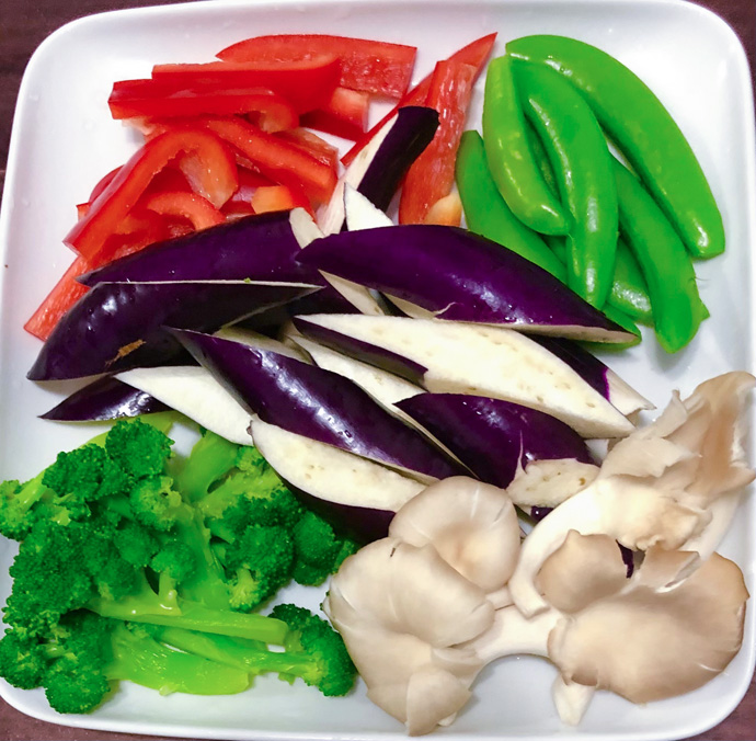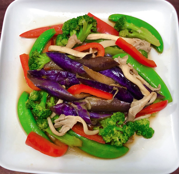 家常蔬炒 Posted on 2021-11-17 by malichuang 回應 材料:茄子、紅椒、甜豆、綠花椰菜、秀珍菇。作法:先把茄子洗淨切片煎熟+醬油爆香,其他蔬菜菇都川燙後加入一起拌炒+胡椒鹽即可。