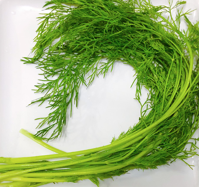 作法:先將茴香菜洗淨川燙過水備用,薑切絲,鍋內放油下薑絲+茴香菜+少許鹽拌炒至熟即可食用。