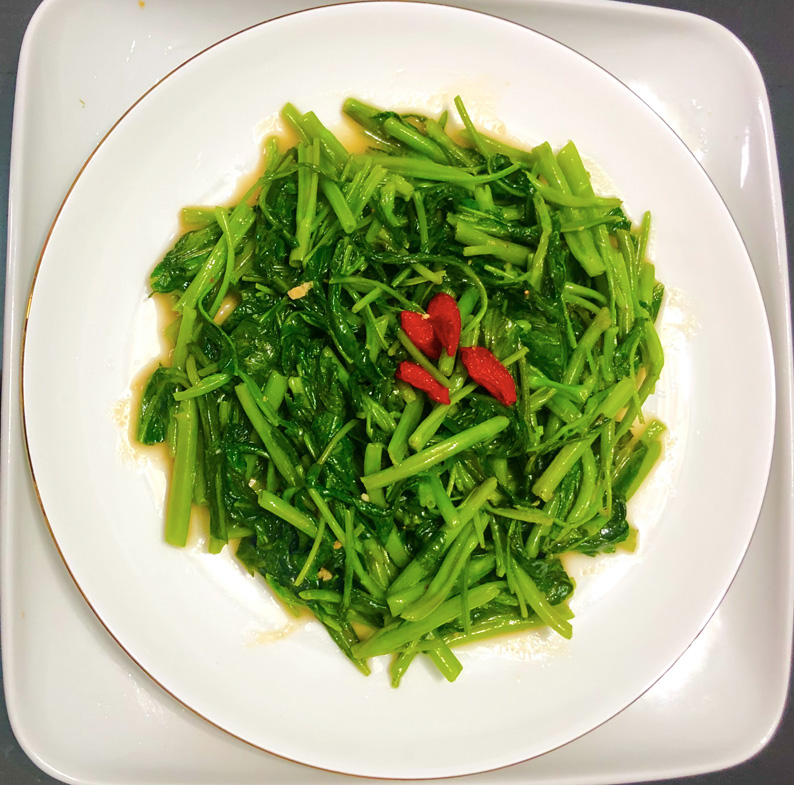 材料:空心菜梗、豆鼓、紅辣椒、糖、薄醬油。