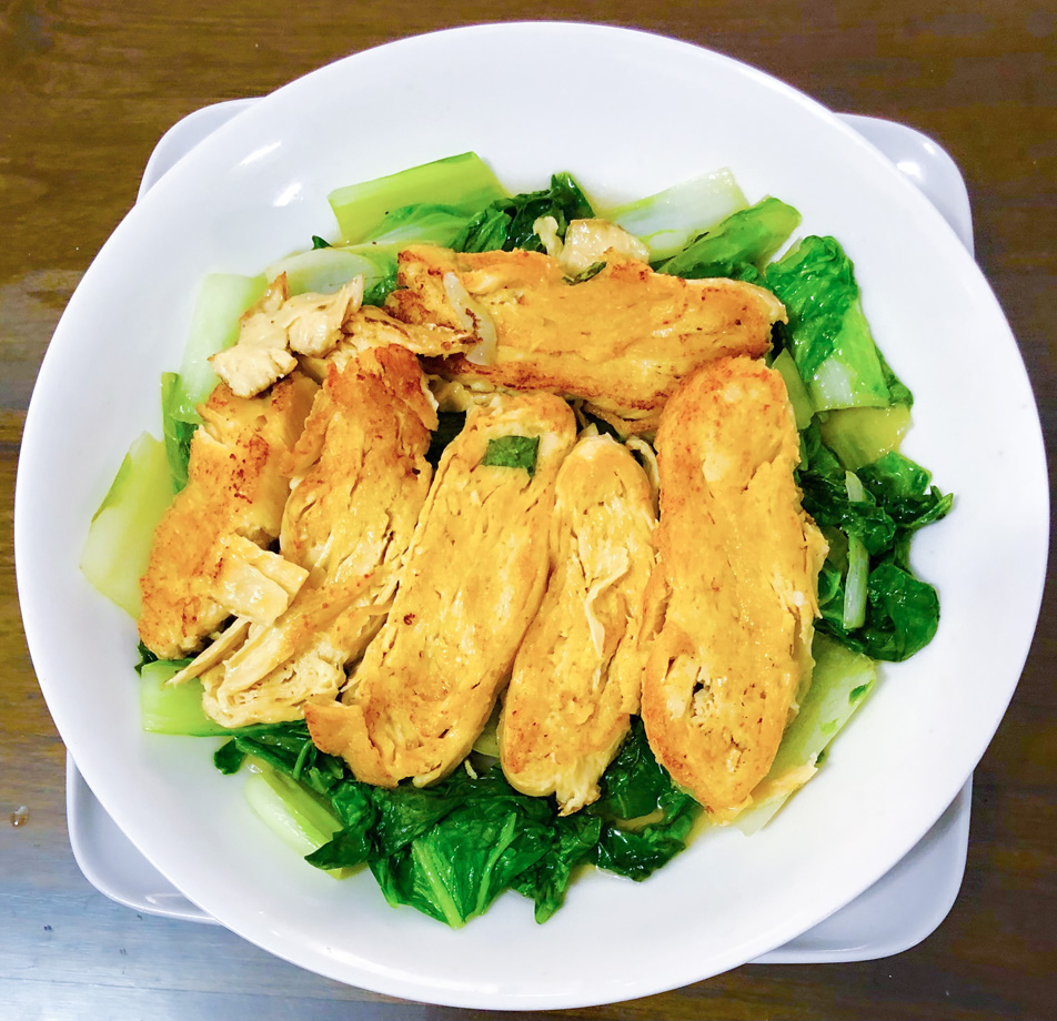 豆包丸小白菜 Posted on 2022-05-03 by malichuang 回應 材料:豆包丸、小白菜。作法:先將小白菜洗淨炒熟放入盤中,豆包丸切片煎兩面黃鋪在小白菜上面即可 (快速懶人菜)。 備註:豆包丸如果用蒸的,直接切片放上。它是德宣產品當天做的,也可以直接切片上桌。