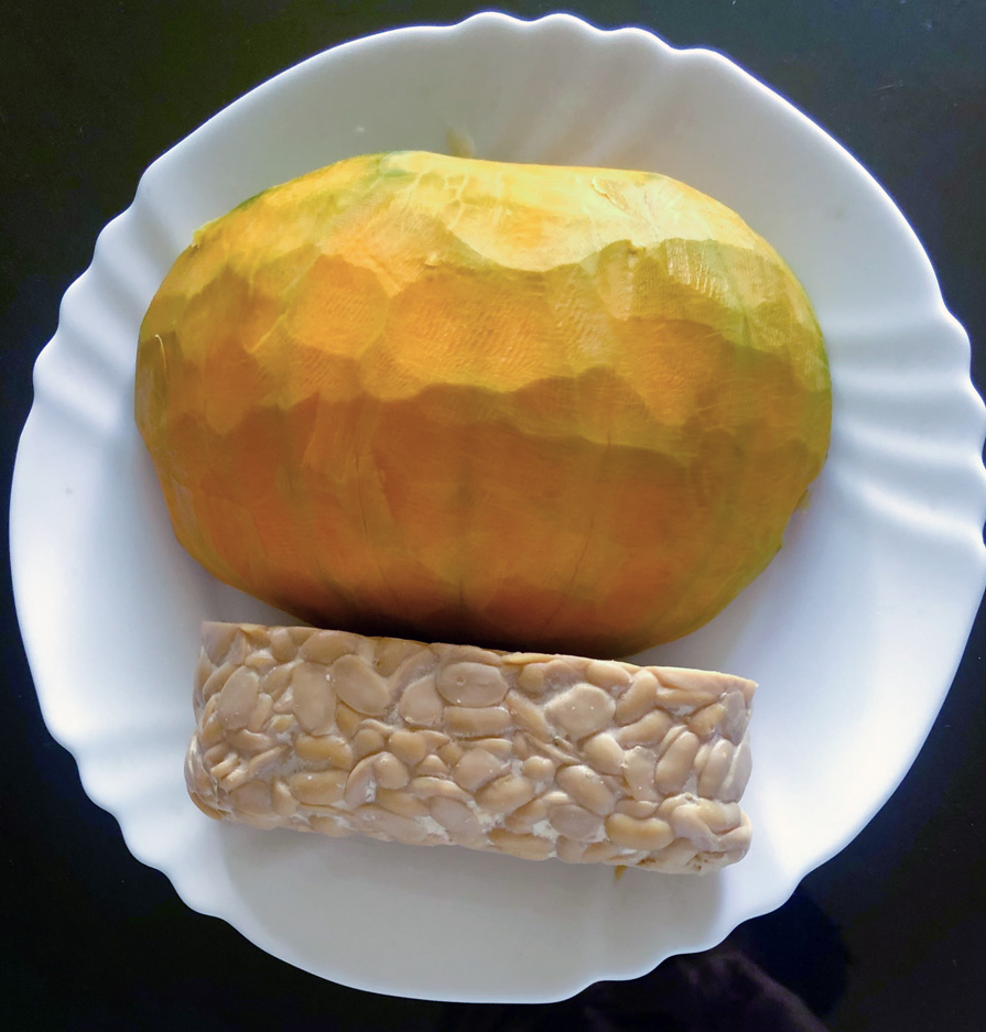作法:烤麩一粒切四片,香菇紅蘿蔔馬鈴薯切大丁,毛豆洗淨全川燙備用。鍋內放油下烤麩煎香+香菇丁炒香+川燙過的馬鈴薯及紅蘿蔔拌炒+素毫油炒香+毛豆+少許水燜熟軟即可盛起食用。