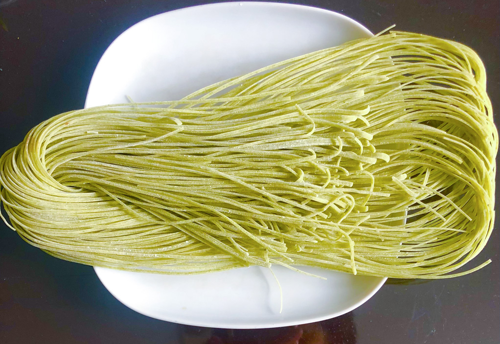 作法:先將麵線燙熟撈出,鍋內放油將燙熟的麵線倒入鍋中煎成兩面金黃色盛起備用。